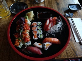 Hiro Sakao Fürth Waldstr zum Sushi essen, sehr freundliche Bedienung, Gastraum jetzt nicht unbedingt der Brüller, Sushi Platte mit 8 Sushi echt lecker, Preis für 3 Personen mit einer Suppe und jeder ein Getränk ca 85 Euronen na ja jedenfalls gut aber nicht billig