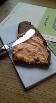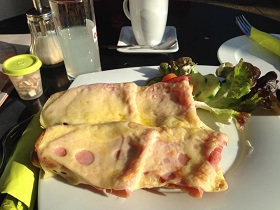 Schinken-Käse Baguette im Stadtpark Café in Fürth. Es hat sehr gut geschmeckt und bezahlt habe ich, gemeinsam mit einem Bitter Lemon, 6,90€.