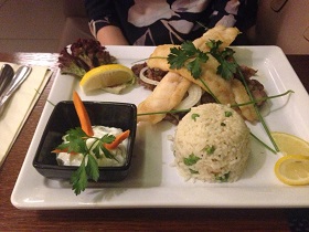 Ich war vorhin mit einer Freundin im Restaurant Poseidon in Fürth. Erstmal möchte ich sagen, daß es sehr modern eingerichtet ist und man trotzdem merkt, daß man in einem griechischen Restaurant ist. Die großen Fenster bieten einen tollen Blick über Fürth. Die nette Bedienung kam sofort und brachte die Karten. Der Chef kam persönlich und begrüßte uns mit Handschlag. Die Bedienung kam wieder und nahm unsere Getränke- und Vorspeisenbestellung auf. Wir nahmen einen Hugo und einen Aperol Sprizz und gemeinsam Pita mit Zaziki. Der Pitafladen war leicht knusprig, das Zaziki gut aber bissl wenig. Meine Freundin bestellte Seezunge mit kleiner Portion Gyros. Das stand als Kombi so nicht auf der Karte, war aber kein Problem. Ich orderte Gyros mit Kalamari. Der Salat kam zügig und auch auf die Hauptgänge mussten wir nicht lange warten. Meine Kalamari waren zart, das Gyros knusprig und nicht zu fett. Die Pommes heiß und ebenfalls knusprig. Die obligatorischen Ouzo bekamen wir natürlich vorher und ich nahm noch einen griechischen Cafe. Zusammen bezahlten wir ca. 43,-€, was ich angemessen finde. Ich war sehr zufrieden, meiner Freundin ihr Gyros war lauwarm, wurde aber anstandslos nochmal in der Pfanne erhitzt