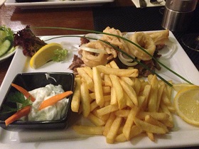 Auch auf das Essen mussten wir nicht lange warten. Es kam heiß an den Tisch. Auch die Wedges waren heiß.