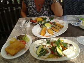 vielfältiges essen, Service am Tisch. Offenes Ambiente, tatsächlich