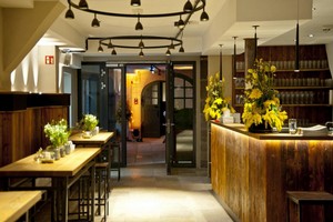 Aus der Zeit gefallen Die Tür schwingt auf zu einem magischen Ort – hinter dem roten Vorhang Essensdüfte, einen ersten Blick erhaschen auf die gut gefüllte Tapasvitrine. Fisch in tiefgrünem Olivenöl, Datteln im Speckmantel, Artischocken, Hackbällchen – der Gaumen stellt auf Empfang. Vorbei an hölzernen Stühlen, an Marmortischchen, Nachbarn zunicken, Freunde begrüßen. Welche Bilder hängen heute an der Wand? Niedergelassen auf der Eckbank mit Blick durch die hohen Galeriefenster nach draußen. | ||
