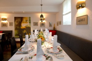 Schilderwach Weinstube Bäumenstraße 19, 90762 Fürth Tel. 0911 748018 Besuchen Sie eines der schönsten Fürther Restaurants. Das Jahrhunderte alte Fachwerkgebäude liegt in unmittelbarer Nähe des Stadttheaters Fürth, deshalb sind nicht selten einige prominente Künstler und das Publikum zu einem Plausch bei uns zu Gast. In den zwei altehrwürdigen Gaststuben mit heimeliger Atmosphäre lässt sich wunderbar unsere gehobene fränkische Küche genießen. Die Weinkarte bietet ein gutes Sortiment von regionalen Weinbauern. Unbedingt probieren sollten Sie unsere Biere und Edelobstbrände. Gern öffnen wir zusätzlich auf Ihren Wunsch, zum Beispiel für Familienfeiern, Betriebsfeste oder andere Anlässe. | ||