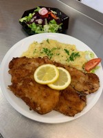 | Gaststätte Stadtwaldschänke Fürth Paul-Keller-Straße 1, 90768 Fürth Telefon: 01577 9123643 Schönes Lokal mit freundlichem Service. Schnitzel und Co waren völlig ok. Auch die Beilagen und der Salat waren gut. Hatte beim zweiten Besuch einen Zwiebelrostbraten. Das Fleisch war auf den Punkt medium gebraten und sehr weich. Die Bratkartoffeln waren super. Hierfür wären 5 Sterne angebracht. Aber in Öl frietierte, gefriergetrocknete Zwiebeln geht gar nicht. Auch die Soße schmeckte wie aus der Tüte. Damit war das Gericht nur noch unterdurchschnittlich. Schade für das gute Stück Fleisch. Deshalb nur 3 Sterne. Sehr netter Service, die verschiedenen Schnitzelvarianten sind qualitativ sehr gut zu einem Top Preis. Hier merkt man dass alles frisch und selbst gemacht ist. Wir kommen gerne wieder :) |