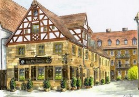 | Schilderwach Weinstube Bäumenstraße 19, 90762 Fürth Telefon: 0911 748018 Gehobene fränkische Gerichte im stilvoll urig dekorierten Restaurant mit holzgetäfelten Wänden und Kachelofen. Besuchen Sie eines der schönsten Fürther Restaurants. Das Jahrhunderte alte Fachwerkgebäude liegt in unmittelbarer Nähe des Stadttheaters Fürth, deshalb sind nicht selten einige prominente Künstler und das Publikum zu einem Plausch bei uns zu Gast. In den zwei altehrwürdigen Gaststuben mit heimeliger Atmosphäre lässt sich wunderbar unsere gehobene fränkische Küche genießen. Die Weinkarte bietet ein gutes Sortiment von regionalen Weinbauern. Unbedingt probieren sollten Sie unsere Biere und Edelobstbrände. Gern öffnen wir zusätzlich auf Ihren Wunsch, zum Beispiel für Familienfeiern, Betriebsfeste oder andere Anlässe |