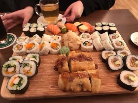 Hiro Sakao Fürth Waldstr zum Sushi essen, sehr freundliche Bedienung, Gastraum jetzt nicht unbedingt der Brüller, Sushi Platte mit 8 Sushi echt lecker, Preis für 3 Personen mit einer Suppe und jeder ein Getränk ca 85 Euronen na ja jedenfalls gut aber nicht billig