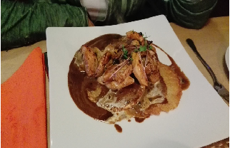 Wir haben gestern Abend sehr gut gespeist. Mein gegrillter Schweinenacken war würzig mariniert und zart, Pommes und Bierdip waren auch gut und soweit ich mich erinnere beides hausgemacht. Ebenso die Burger wurden gelobt, besonders der mit dem Käse im Fleischküchla. Abwechslungsreiche Biere waren im Angebot, von klassisch bis fruchtig. Fränkische und österreichische (Blaubeere) Schnäpse waren der Zwischengang. Zum Nachtisch gab es unter anderem Bieramisu. Alles war vom Preis-Leistungsverhältnis sehr in Ordnung. Die Mädels im Service waren äußerst sympathisch und aufmerksam.