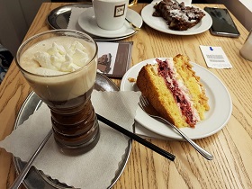 Hallo zusammen, wir (2 Personen) waren Samstag Abend im Cafe Maxx in der Gustavstraße in Fürth. Nachdem alle anderen Cafes in der Umgebung völlig überfüllt waren, waren wir erst etwas skeptisch, weil das Cafe Maxx so viele freie Tische hatte. Letztendlich war es überhaupt nicht nachvollziehbar, warum dort kaum jemand war. Wir hatten beide einen Latte Macchiato, für mich laktosefrei und für meine Begleitung normal. Zusätzlich gab es noch ein sehr großes Stück Mandarine-Maracuja-Torte. Beides war absolut lecker. Die Bedienung war sehr freundlich und wir waren überrascht, dass es in dem kleinen Lokal doch tatsächlich auch eine Tageskarte gab. Die Räumlichkeiten waren sehr offen und einladend. Es herrschte fast schon eine private und vertraute Atmosphäre. Wir haben uns sehr wohl gefühlt.