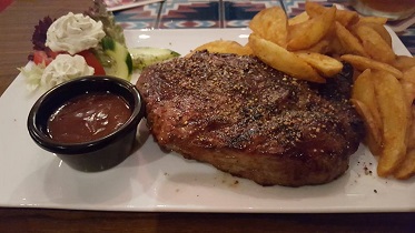 Das Steak, welches medium bestellt wurde, war auch medium und schmeckte hervorragend. Das dazu bestellte Zoigl-Bier ebenso