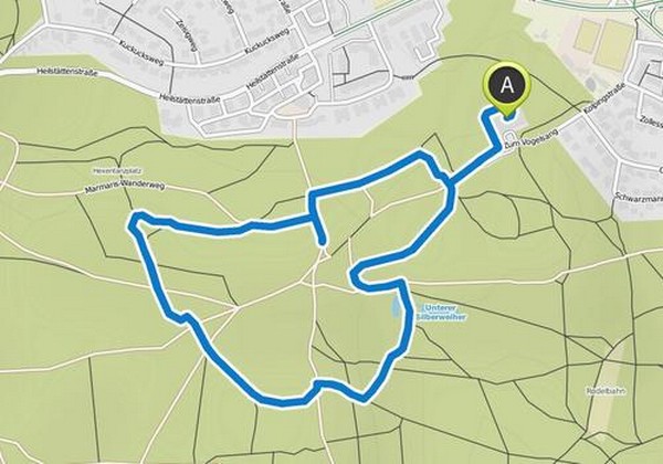 ![]() | Silberweiher – Wildschweingehege Rundgang von Zum Vogelsang aus. Länge ca. 3,0 km | |