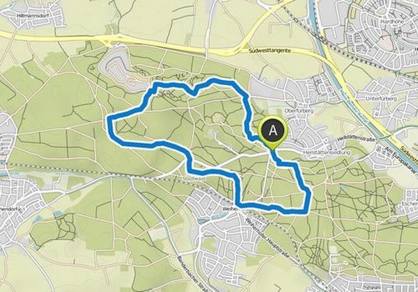 ![]() | Silberweiher – Wildschweingehege Rundgang von Fürth aus. Länge ca. 6,2 km | |