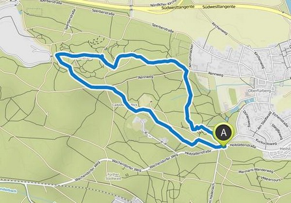 ![]() | Walderlebnispfad Oberfürberg – Schutzhütte Cadolzburger Blick Rundgang von der Heilstättenstraße aus. Länge ca. 4,5 km | |