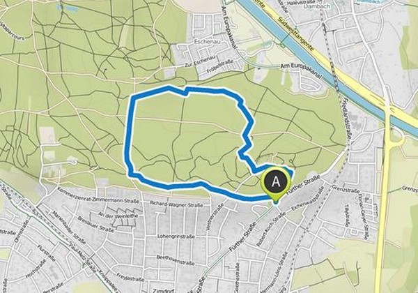 ![]() | Wildschweingehege – Silberweiher Rundgang von Zirndorf aus. Länge ca. 5,7 km | |